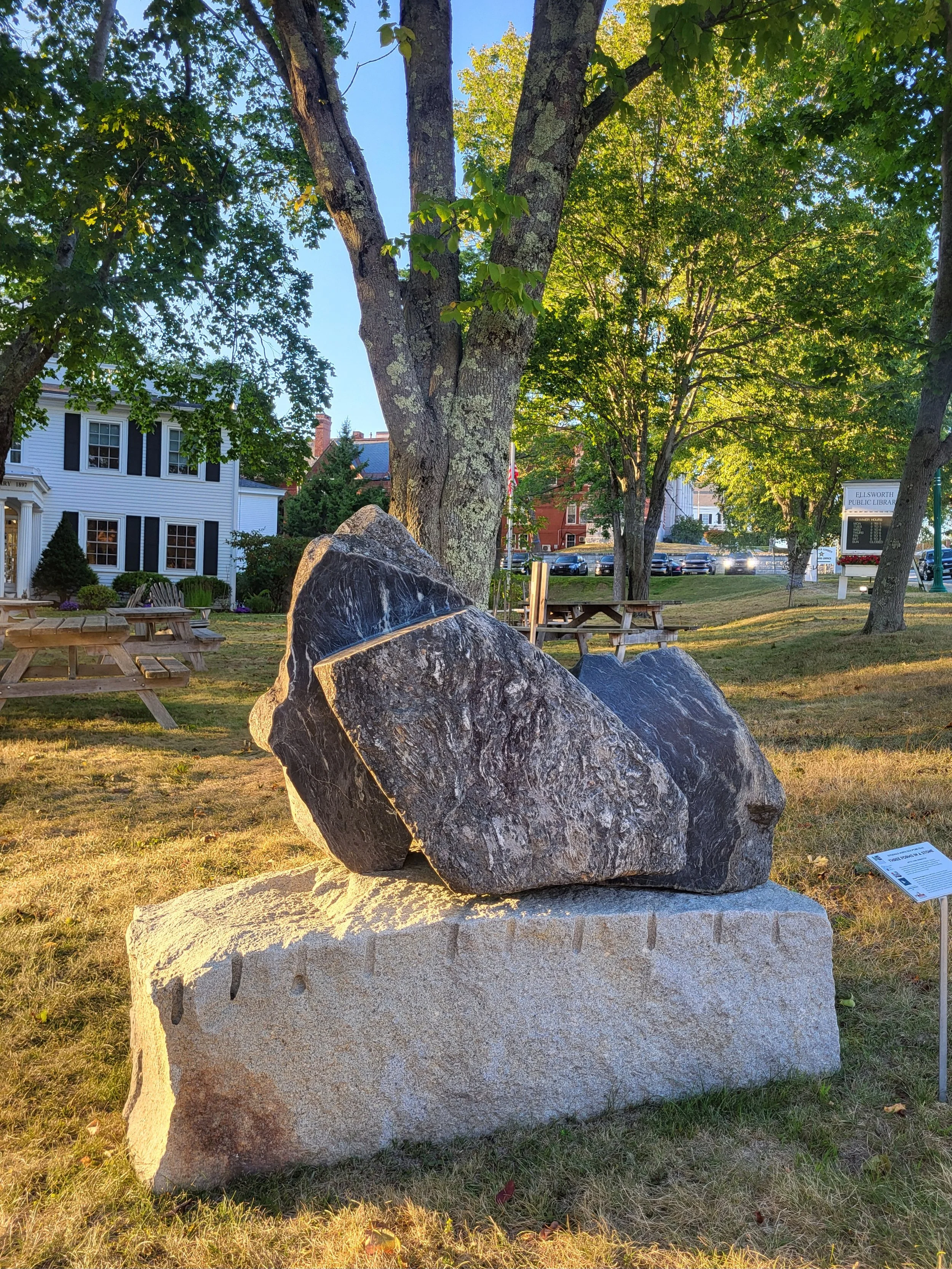 Riverwalk north sculpture trail at the ellsworth public Library