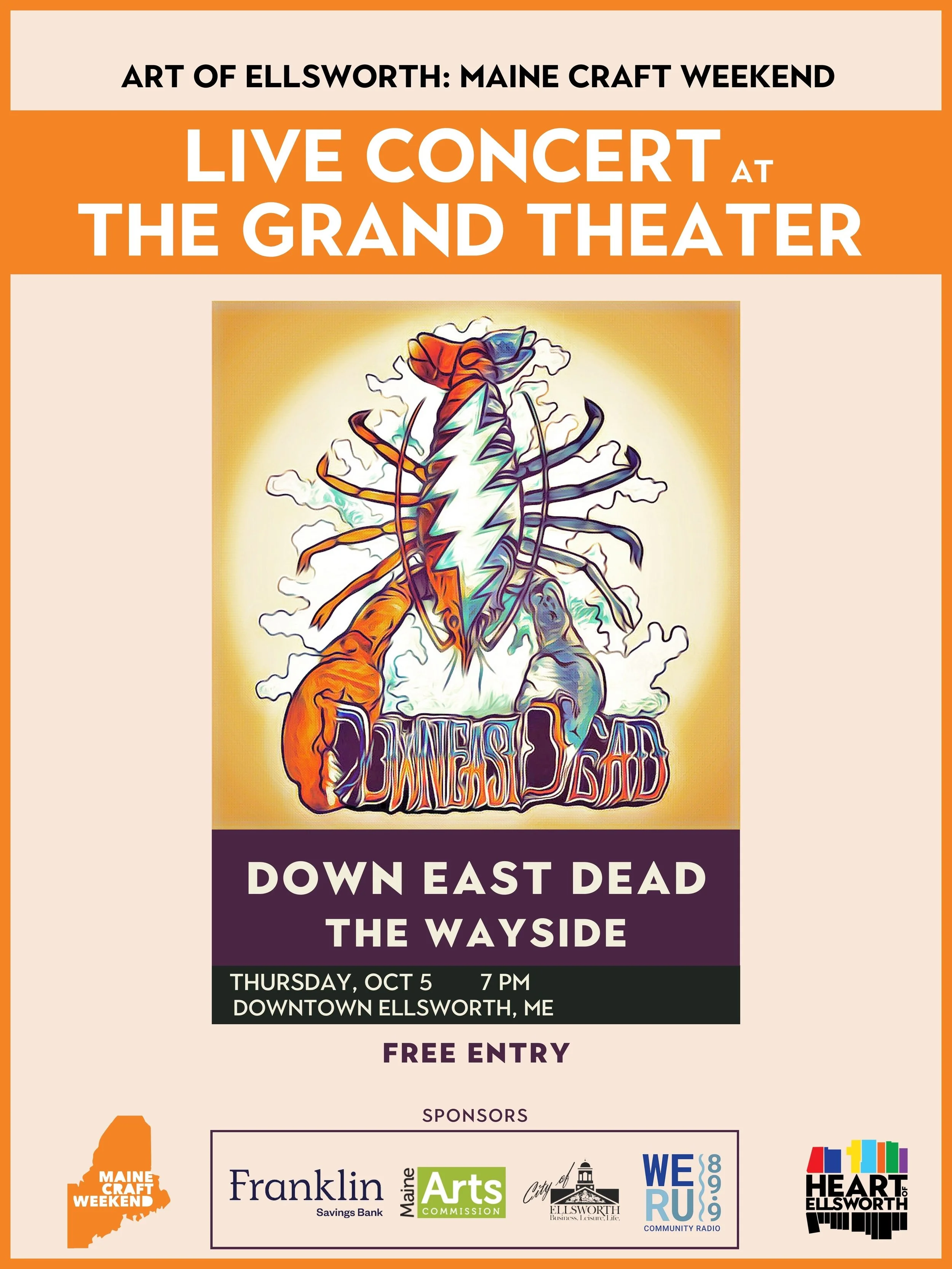 Kick off the weekend with a Down East Dead concert at The Grand on Thursday, October 5! Opening performances by Ellsworth-based band: The Wayside.